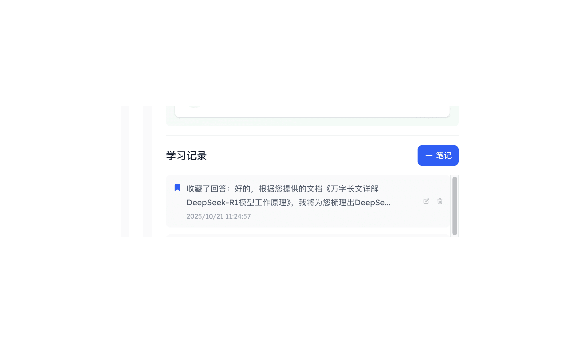 支持对任何 AI 生成内容添加个人笔记和评论,记录思考过程,建立个人化的知识注释体系,让学习更有深度。