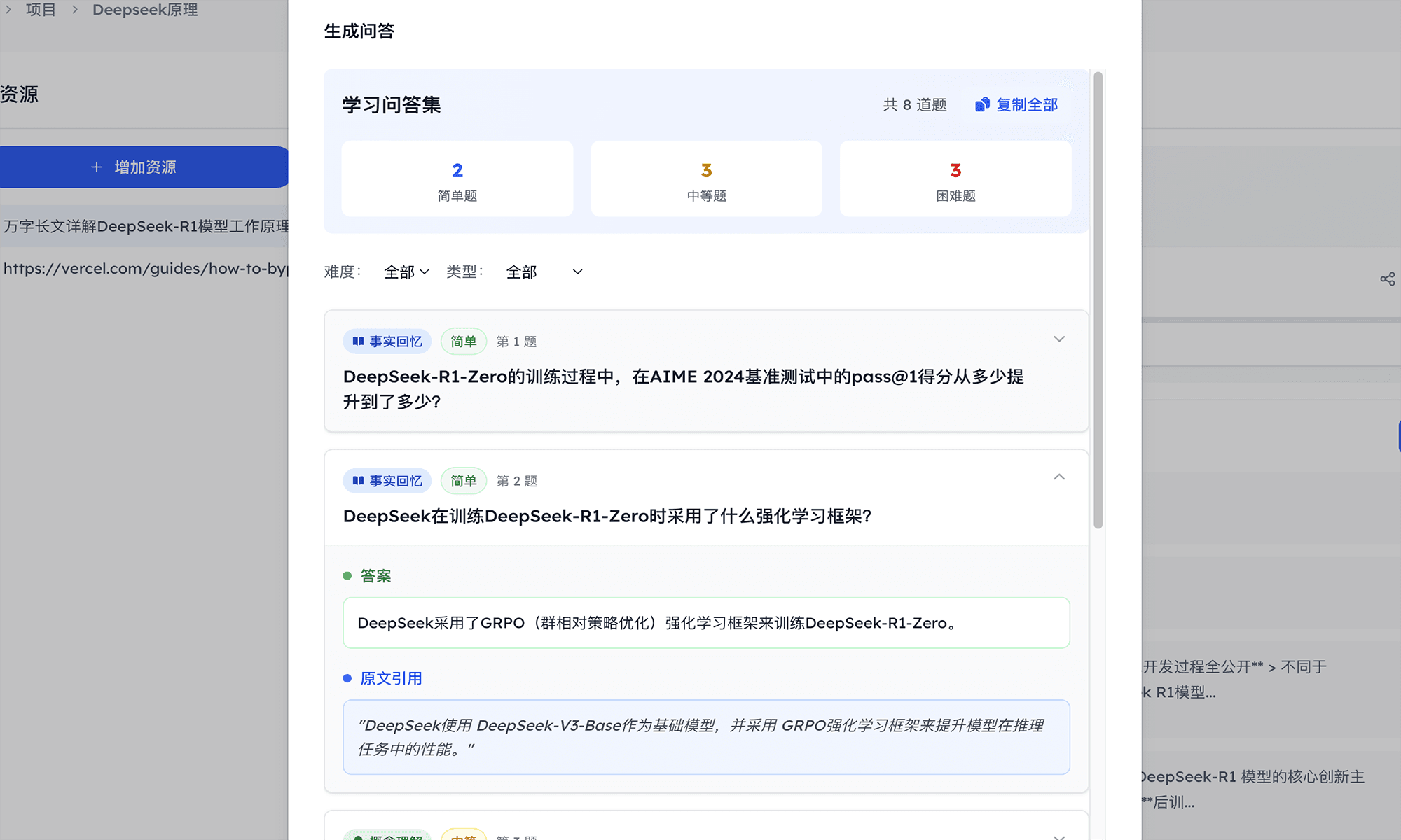 基于文档内容进行深度对话,获得专业级回答和原文引用。