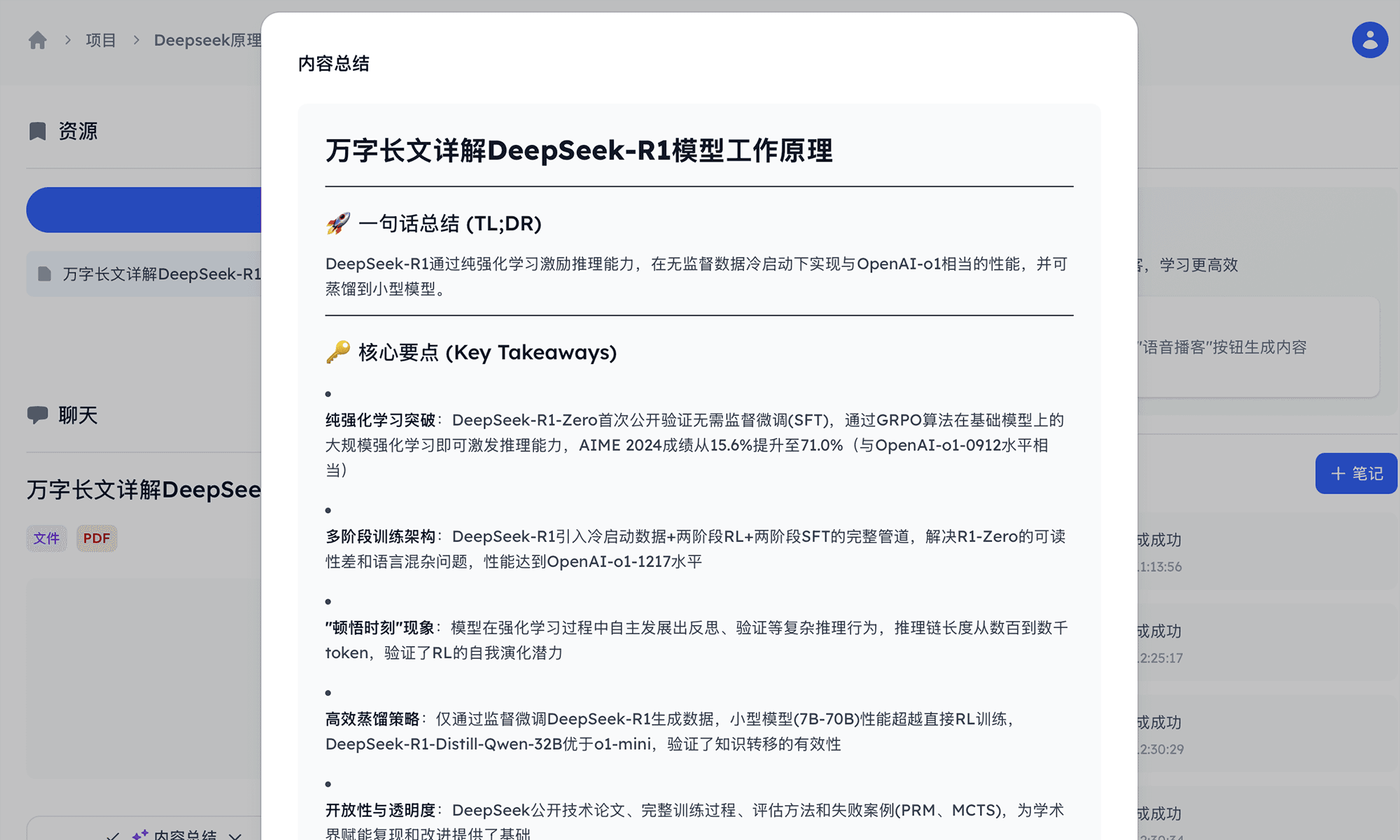 从内容总结到语音播客,从思维导图到智能问答,让 AI 重新定义您的知识获取方式。